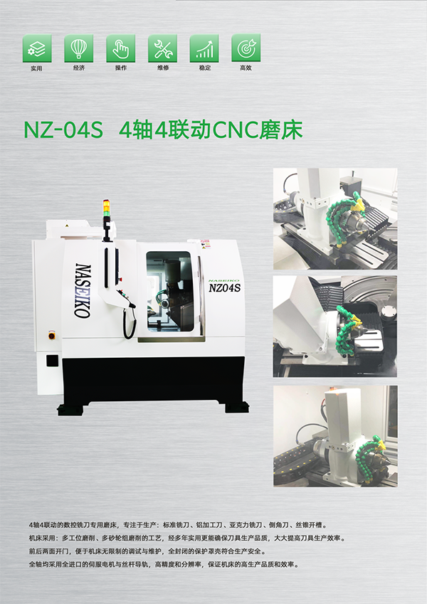 4軸4聯(lián)動(dòng)的數(shù)控銑刀專用磨床,專注于生產(chǎn):標(biāo)準(zhǔn)銑刀、鋁加工刀、亞克力銑刀、倒角刀、絲錐開槽。